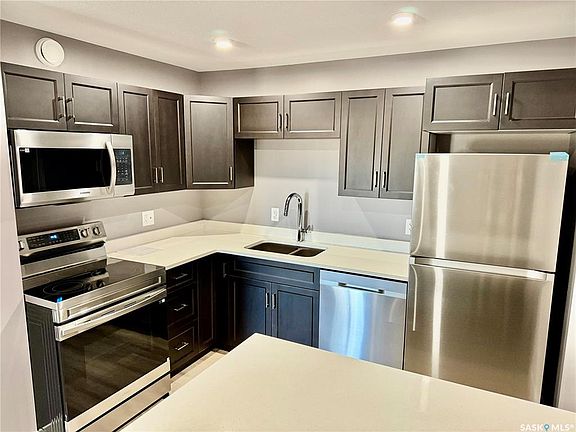 Top floor North East facing 2 bedroom condo in Parkland Condominiums with city skyline view! This suite has luxury vinyl plank floors throughout. Entry to unit has good size closet and direct access to In Suite Laundry room with new washer/dryer. Kitchen features new Pine finger joint cabinets with undermount sink & quartz counter tops, also boasting an island with quartz counter top. New fridge, stove, b/i dishwasher, and microwave/rangehood included. Livingroom has patio doors leading to North facing balcony. Down the hall are two bedrooms and a four piece bathroom. Pantry just off kitchen. The primary bedroom has walk in closet and vinyl plank floor. 2nd bedroom has closet and vinyl plank floor. 4 pc bath has new tub/shower, toilet and vanity with undermount sink and quartz counter top. Nice size storage in bathroom as well and vinyl plank floors. The condo will also have new window treatments throughout. One electrified outdoor parking stall included. Don't miss out on this modern unit with a great view of the city skyline! Buyer to contact City of Humboldt regarding taxes. Call today to view!