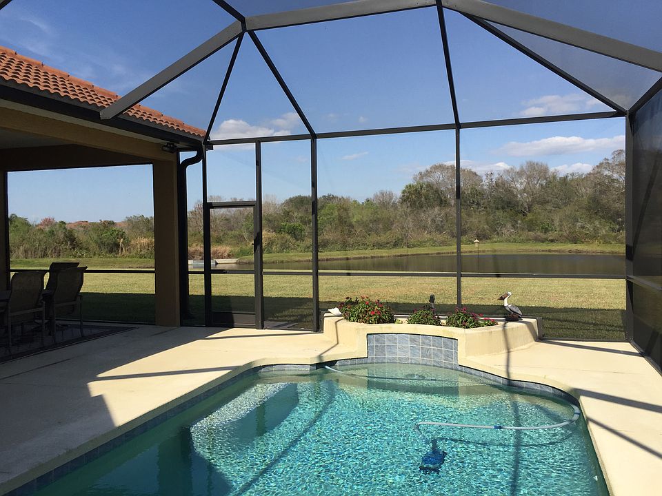 Spacious pool home in excellent condition in Country Meadows is a must see. Located on a premium lot with no neighbor across the street, a preserve and lake view to the rear the home has great curb appeal with a tile roof, and paver driveway. Built by Medalion homes this is the popular Barbados model that features 4 bedrooms, 3 full baths, office, and a large bonus room. The owners had the 4 car tandem garage extended and widened to make sure there was plenty of storage and space to park the cars. The master bedroom has dual walk in closets, dual sinks, shower and separate garden tub. The massive kitchen has upgraded wood cabinets, granite counter tops, and stainless steel appliances. Large breakfast bar overlooking the family room and breakfast nook with aquarium style window. The bonus room in the back of the house makes a perfect game room, or use it however you choose. Relax out on the lanai with plenty of covered area, outdoor kitchen space, and a fantastic view of nature preserve and the lake. Country meadows is a premium neighborhood with low hoa fees, no CDD fees, A rated schools, and easy access to shopping. Large 1/2 acre home site and reclaimed water for irrigation too. Make sure to check this one out on your next tour!
