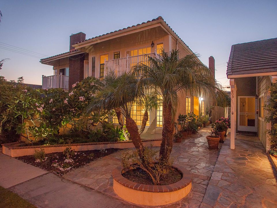This highly desirable Huntington Beach home has 2 stories, 3 bedrooms, and 2- baths and enjoys a downtown location within walking distance to Huntington High, Dwyer Middle School, Agnes Smith Elementary School, and Huntington Beach City Gym and Pool. It is also close to freeway access and is walking distance from, or a short bicycle ride to, the world famous beaches, wetlands, pier, and downtown area, with abundant opportunities for shopping and dining. The property has amazing natural light, a step-down cozy carpeted living room with a wall-mounted 55" TV, and a formal dining area with built-in china cabinets, tile floors, recessed lighting, and crown molding. The downstairs bathroom is next to the inside laundry room (washer and dryer included). The kitchen has an open layout with granite countertops, a center island, fireplace, and a wall-mounted 42" TV. The kitchen opens up to a relaxing family room that overlooks a spacious, paradise-like back yard with a magnificent avocado tree. The 2nd floor consists of a spacious master bedroom with a private balcony, vaulted ceilings, and its own private bathroom suite with a large soaking tub. The 2nd and 3rd bedrooms are suitable for use as offices, craft rooms, or guest rooms; one has a private balcony. The upstairs bathroom is beautifully tiled. The property also includes a spacious detached 2-car garage, substantial workbench, wall mounted heater, an automatic opener, a private back entrance from the garage, and plenty of street parking for guests. No smoking is allowed and no pets unless approved by the property owner. Landscaping and pest service included.