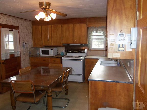 Small Town living! Nice 1.5 story dwelling. Main floor contains an eat in kitchen, living room, bedroom, and a full bathroom. There is a front and back covered porch. The second floor contains 2-3 bedrooms and a 1/2 bathroom. There is a full basement. The siding is metal. The roof is approximately 8-9 years old and in good condition. The house has a forced air furnace and central air. The electrical has a breaker panel. There is a one car garage and a small shed. This sits on a spacious double lot. Call today for more details and your private showing!!