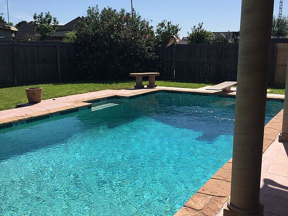 If you'd love to have a LARGE IN-GROUND DIVING POOL with SPA to entertain family & friends, this 3-2-2 brick home in a nice neighborhood is for you! Home features BIG & OPEN Living, Kitchen, Formal Dining & Breakfast area for your family with ceramic tile & wood look vinyl flooring. You'll love the kitchen with island, gas range, custom cabinets & tile backsplash. Master Bedroom with walk-in closet is split from secondary bedrooms & features a large bathroom with jacuzzi tub, separate shower & two vanities. Backyard is privacy fenced (part of fence is new) & features a large patio & storage building.