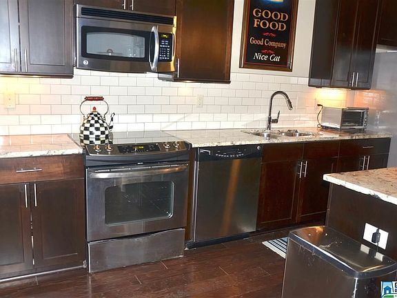 The popular lofts with exposed brick wall, exposed pipes and beams. Excellent condition, just move right in. Impressive features in this custom 3 br, 2.5 bath with over 1600sf. Hardwoods, high ceilings, open floor plan, tile baths. Upgraded large covered porch on back. Kitchen with Stainless Steel appliances, breakfast bar and work island with granite counter tops. Laundry closet. 2 bedrooms with a jack and jill bath on the main level, powder room and cool open stairwell. PRIVATE BACK. Architecture is classy with clean lines. Upstairs is a master suite with HUGE master bedroom with sitting area. HUGE walk in closet with California closet organizer. Bath with custom built ins and stand up shower. ALL this and award winning Oak Mountain Schools too. This complex has lots of green spaces and just a few minutes to shopping. 20 minutes to downtown Birmingham.