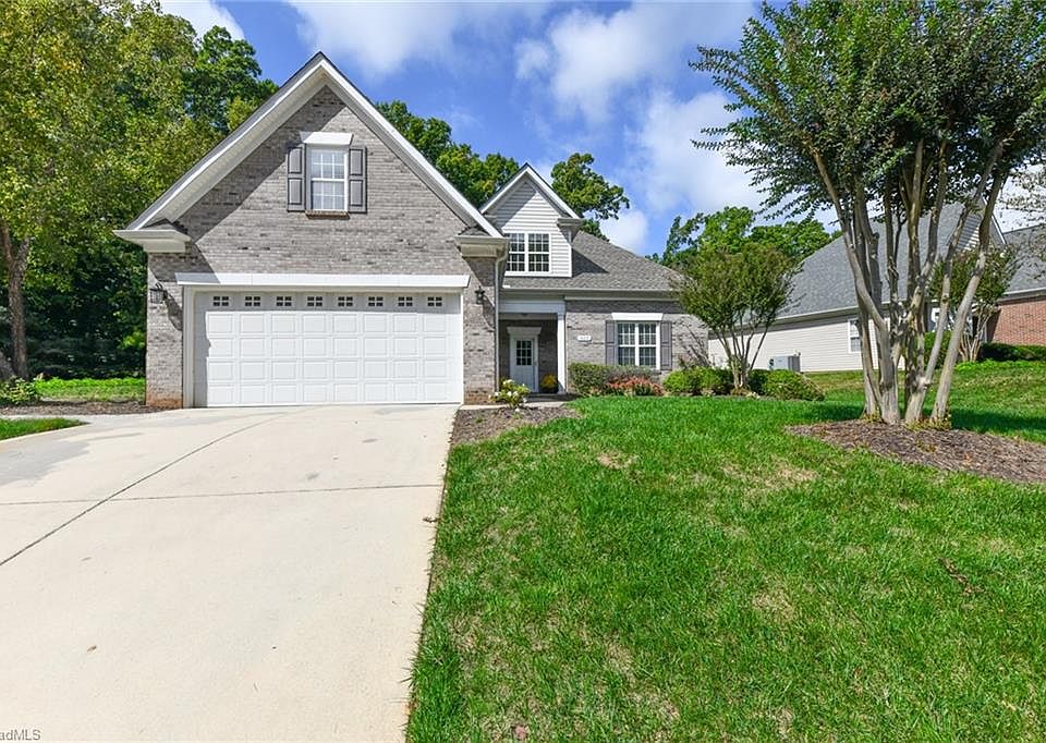 Previous Model home in community near Guilford College, shopping and restaurants. Adjacent lot available for purchase. Lawn maintenance included in low HOA dues of $89.00 mo.! Open floor plan, vaulted ceilings, eat-in kitchen, large kitchen island with solid surface countertops, gas cooktop, stainless appliances, ample cabinet space many with pull out drawers, formal dining room, great room with gas fireplace and built-in bookshelves, sunroom with tile floors leading to patio, Primary on main floor with walk in closet, garden tub and separate shower, comfort height toilet, separate sinks and vanities. 2nd and 3rd bedrooms upstairs,Huge bonus room, plenty of eave storage.