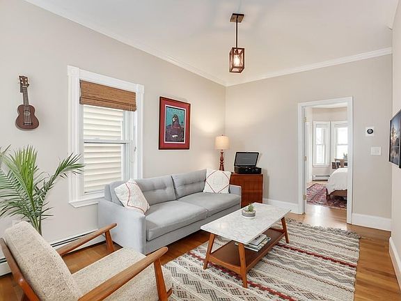 Great location! This beautiful well-maintained two bedroom unit features classic-modern charm and updated finishes throughout. The spacious floor plan offers hardwood floors, high ceilings, crown moldings, and an abundant amount of light. The chic living space is ideal for entertaining. Updated eat-in kitchen provides plenty of storage, granite counters, and S.S. appliances. Complete Gut Renovation (2010) includes newer electric, plumbing, insulation and furnace. The common patio and oversized yard is perfect for relaxation and makes an ideal oasis in the city. Excellent dedicated storage/laundry in basement completes this gem! The well-managed pet friendly association is centrally located blocks from the T (Wood Island) and Constitution Beach and has access to the best of East Boston restaurants and shops.