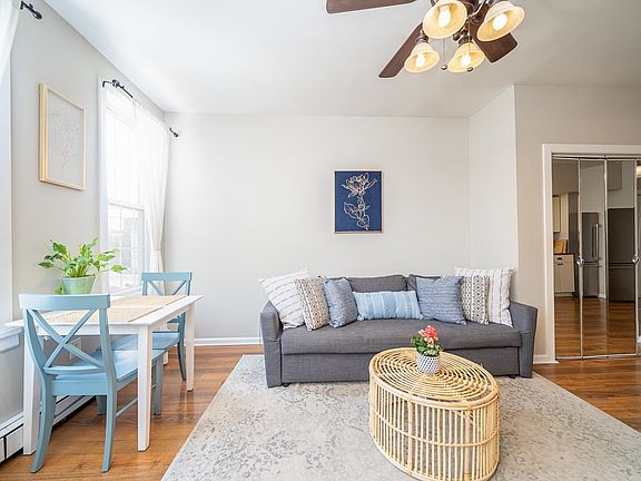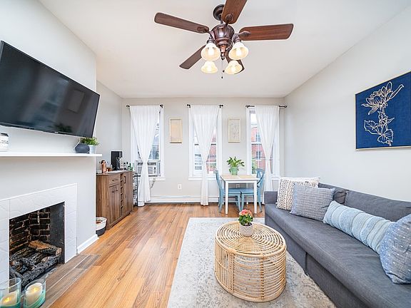 Sunny and spacious top floor 1 bedroom + large den condo *with parking and outdoor space* in Downtown Union City, less than 5 blocks from Washington Park! This adorable 1 bed + LARGE DEN, 1 bath features in-unit laundry, off-street parking, a terrace perfect for grilling, and a large, manicured shared yard. An open concept living/dining space is home to stainless steel appliances, new butcher’s block countertops, and a gas fireplace. The primary bedroom has charming french doors and two large closets for storage. The den/ second bedroom is spacious and features a skylight, making it a lovely office, guest room, or nursery. Close to vibrant Washington Park, Jersey City Heights, and Uptown Hoboken, you’ll have access to great restaurants, fun bars, and easy transportation.