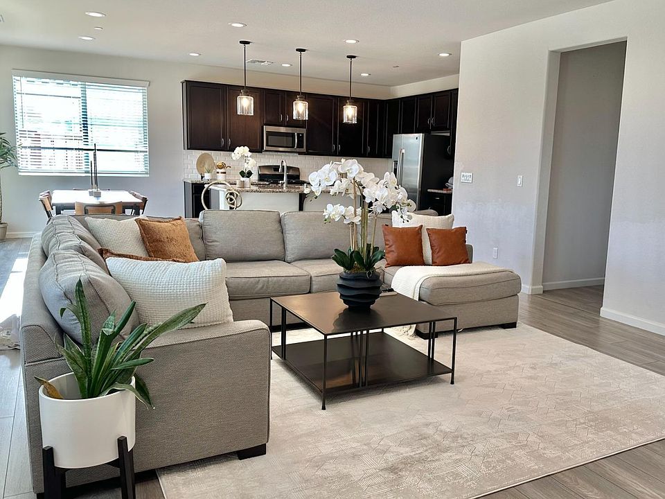 Welcome to this gorgeous move-in ready home located in Vanden Estates. This beautiful two-story, 4-bedroom home features a secluded study and half bath on the main floor, a great room that flows into an inviting kitchen with a wide center island, a roomy walk-in pantry, and an oversized slider off the kitchen which leads to a fully landscaped backyard. Upstairs, you'll enjoy a generous sized loft, spacious laundry room, a well-appointed primary suite with a large walk-in closet and three additional bedrooms. Clear Pest and clear Home Inspection.