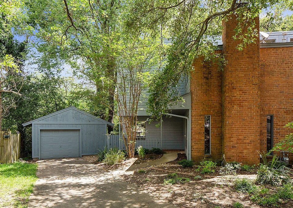 Tucked away in a cozy cul de sac, this 2/1.5 town home sits nestled under a shady canopy of majestic trees. Many updates, yet still retains appealing architectural style not found in newer homes. No HOA! The sunken living room features large windows for ample natural light, a wood burning fireplace, and a brick planter. The dining room overlooks the deck and beyond into the breathtaking natural setting. Kitchen updates include granite counter tops, newer kitchen appliances. Half bath and laundry room downstairs. Upstairs, two nice sized bedrooms and a recently updated full bath with two sinks, new tub/surround and flooring. Nice storage! The recently stained deck is the perfect setting to enjoy the daily show of the wildlife who travel the migratory pathway of Burton Creek. Fully fenced yard. Detached 1.5 car garage. Many updates! All siding replaced in 2016. New vinyl sliding glass door in dining room. Some windows replaced. Insurance claims adjuster coming to check roof on 6/27.
