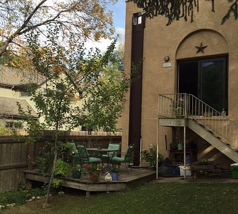One bedroom, two level, 680 square foot corner unit in a historic speakeasy from 1924. $2,030/month, available May 1st for a minimum one year lease. Located in one of Boulder's most beautiful neighborhoods, one block from trailheads leading to Chautauqua Park and Flagstaff Mountain, and views to the north of mount Sanitas. The University of Colorado is 1 mile away and downtown 1.3 miles away. Close to the HOP bus line. The condo is separated into two living spaces: upstairs is an open area for kitchen/living/bath, with a large sliding glass window facing west and another large window facing north; and downstairs a large area for a bedroom and study area with a closet, a large window facing north and private from the street view. This is the only split level unit making the bedroom ideal for quiet sleeping. Hardwood and cork flooring throughout. The kitchen features a full-size refrigerator, stainless steel sink and over-sink dish drying rack, granite counters, a Thermador gas range, integrated sink water filter, and a custom butcher block island with storage. There is no dishwasher. The bathroom has a tub/shower combo, a solar tube skylight, and timed ventilator. The lot is fenced and private with apple trees, a raised bed for gardening, and raised deck for outside lounging and dining. Water access available at the garden level. This is a quiet building of 12 apartments in a quiet neighborhood. One off street parking space is provided, a 8 x 12 dedicated private storage locker is included in the building, as well as on site laundry, clothes-line, communal space, and bike storage. The building has recently been upgraded with solar panels and a high efficiency hot water boiler for both heating and domestic hot water. 70% of the building's hot water is produced by solar heat. There is no AC unit. The tenant pays for electricity, internet, and cable if desired (cable is ready on both floors). Water, hot water and heat, gas, trash, and HOA fees are paid by the owner. Tenant must mow lawn (communal push mower provided in building) and shovel the sidewalk of snow passing in front of the entrance and along the unit's fence. The HOA rules prevent pets, smoking, open flame bbq and fire pits. There are quiet hours from 11pm and 7 am. A security deposit of one month rent is required. This listing will be managed by a private management company and not the owner.