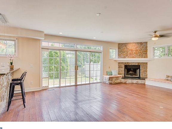 Exquisite newly renovated Colonial 4 bedrooms 2 1/2 baths home in Haddon Township offering 2,500 square feet luxury living. This beautiful home is a perfect blend of traditional and contemporary finishes. Large great room features wide maple hardwood floor throughout the entire first floor, stone fireplace with built-in sitting area, large wet bar with granite tops and a wine shelf perfect for entertaining; four french sliding doors lead to a fenced backyard; brand new kitchen with granite countertops, contemporary wood cabinets, modern glass backslash tiles, stainless appliances, eat in kitchen with elegant pendent light, half bath on the first floor. Second floor features refinished hard wood floor inside all of the bedrooms; new master bathroom en suite and hallway bathroom showcase tiled large shower, new tiled floor new light fixtures and vanities. Additional updates include new TWO ZONED A/C, plenty of recess lights, windows, partial finished basement, covered porch, corner lot, tons of storage space and large closets. Close to Newton Lake Park, fishing piers and playgrounds, PATCO, major highways & transportation and excellent schools.