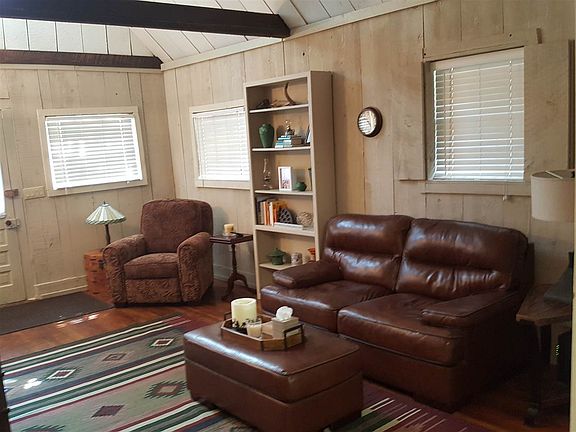 Beautiful historic Cabin, built during the WW II era. Sets only yards across the street from the Lodge and Golf Course. Open great room with 12' ceilings and Beam. New Propane Log fireplace with new walnut mantel. New kitchen appliances with electric downdraft s/c range, all stainless steel. Master Bedroom has en-suite, cedar lined closet, and double doors leading out to a massive deck with exposed beams and views of tall pines. Downstairs has been totally redone with pine and closet sliding barn door.
