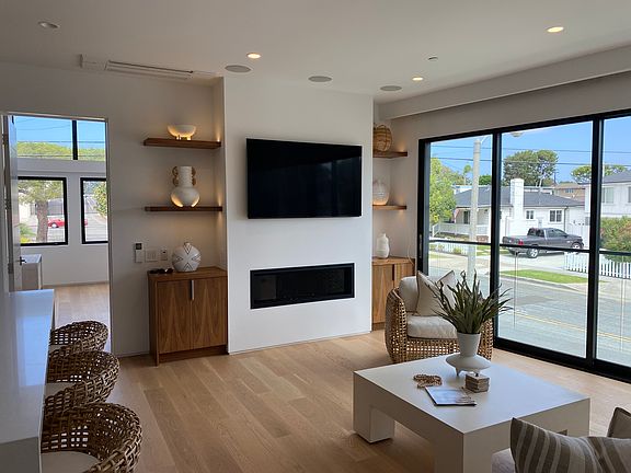 This exquisite modern home is located in a quiet neighborhood near downtown area of Huntington Beach. Whether you want to take a stroll on the beach, dine at one of the many restaurants or shop at City it is all within walking distance. The apt is attached the main house with a separate entrance. The property offers floor to ceiling glass doors that lead to a private balcony. Two fireplaces in both the bedroom and family room, along with 2 large flat screen TV's that offer surround sound for your listening pleasure. You can enjoy your favorite music throughout with top of the line speakers which can be controlled through you phone. The furnishings are from Restoration Hardware that were professionally designed to include a sofa bed that can accommodate a guest. The bed (heirloom mattress) and linens in the master suite were chosen for both comfort and beauty. L It includes 1 1/2 bathrooms and a LG front loading washer/dryer area inside the home. The Kitchen is equipped with top of the line Thermador appliances to include cooktop, oven and double door refrigerator/freezer. Beautiful walnut cabinets thru out that offer tons of storage and aesthetic beauty. You also have all the kitchen necessities needed to prepare a gourmet meal. The home is fully air conditioned. Wi fi and basic cable along with utilities are included. All shades/ window coverings/ shades are automated. You will have private access to a small yard that includes a barbecue and smoker. The exterior has cameras for your security. A housekeeper and auto detailer are available by appointment if you so desire. For insurance or corporate - request quote for consistent monthly rate for 6 months or more. Renter policy required by tenant. Month to month. All utilities paid. Internet and cable included. No smoking. Pets negotiable. Renter policy required.