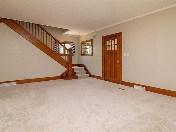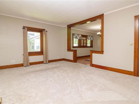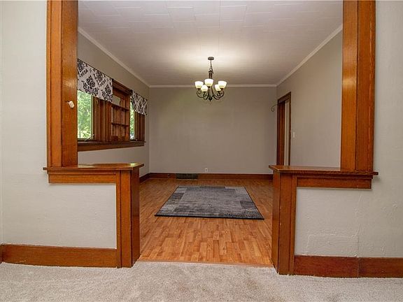 WOW! That is what you will say when you tour this beautiful home. The main floor features a large living room, spacious dining room, nice kitchen w/walk in pantry, 1/2 bath and a possible small bedroom. You can not help notice the gorgeous staircase, and woodwork through out the home. The second floor has two large bedrooms and a full bathroom. Full basement is great for storage, laundry and could possibly be partially finished for additional living space, has been tiled/waterproofed. Very nice back yard for children or pets. Pull your car into the nice over sized detached garage and here you are Home Sweet Home! Call today for your showing before someone else does.