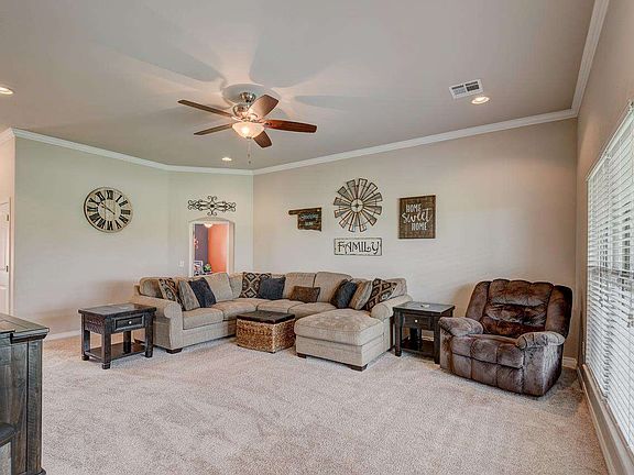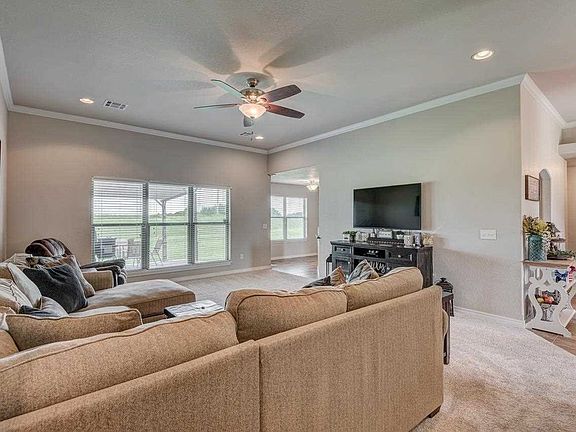 Beautiful move in ready home four bedroom with two bathrooms. Richmond school district, granite counter tops, security system, high ceilings with crown molding in main living area, split bedrooms, outbuilding, storm shelter, extended patio with pergola. Two dining areas, pantry with a gas range. Home in mint condition and ready for you.