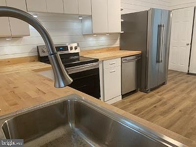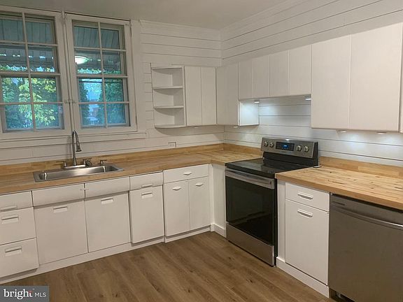 Completely updated city row home. New 200 amp electric; central air; new replacement windows. 5 bedrooms, new ceiling fan lights, 1 1/2 baths. Fresh paint, shiplap, all new waterproof vinyl plank flooring throughout. New refrigerator, dishwasher and oven/range with butcher block counters. Cute built in shelves with glass doors in living room. Furnace recently cleaned and serviced. Fenced in backyard, Full basement with outside access. Walking distance to downtown activities.