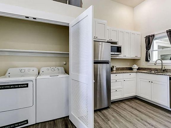 Living in Cottage Grove's historic Bank Building is truly unique. Experience the energy of urban living while embracing the close-knit community found only in a small town. Apartment 202 is a new, 3-bedroom, 1-bath with 12-foot high ceilings. The large windows throughout naturally bathe the multiple rooms with loads of light. The living room's windows overlook Cottage Grove's historic downtown. The master bedroom's enormous bay windows allow you to see all the way up and down Main Street, as well as the surrounding hills as they shimmer with delight on a clear, sunny day. The new, wrap-around kitchen is a cook's delight with stainless steel dishwasher, gas cook stove and oven, microwave, and refrigerator-freezer. And, you'll love the granite-like countertops and custom cabinets. Each of the bedrooms have oversize 7-foot windows with safety latches for children, and large, deep windowsills to sit yourself or plants on. The bathroom has a historic-looking tiled floor with a porcelain tub-shower. Clothes are easily laundered with the apartment's own new washer and dryer. And, the heat pump will economically keep you cozy in the winter and cool in the summer. Safely located on the second floor behind a locked door, each of the six upstairs apartments are just a few steps from the Community Parlor. It's filled with stuffed chairs, love seats, wooden tables, and a push-button gas fireplace. Relax and sit quietly by the fireplace and read a captivating book about love and mystery. Or, if you prefer, you're also welcome to grab the folded tables and chairs from the closet and have a "Potluck in the Parlor" with your neighbors. Play table games. Laugh out loud. Break bread together. Enjoy your community. Need additional room for items you want to access but don't need often? More storage is just down the hall. This beautiful, unique apartment is inside the historic Bank Building, centrally located in Cottage Grove's downtown historic district. Built in 1904, the Building's renovation is nearly complete and includes new plumbing, electrical, cable, and windows throughout. In the downstairs will soon be an old-fashioned eatery (coffee, ice cream, and restaurant), reception area and visitor center, private offices, personal desks, and co-working space. Windermere Real Estate will be an anchor tenant. Within just a four-block radius of the Bank Building are nine unique restaurants; from white tablecloth to family-style to grab-and-go. The historic downtown district has multiple specialty gift stores, antique shops, three independent bookstores, and more professional offices. Cottage Grove is a small-town of 10,000 and just 25 minutes from Eugene-Springfield. The area has two lakes, two rivers, two golf courses, five wineries, six historic covered bridges, and miles and miles of walking, biking, and hiking trails. The five-block historic downtown is the most intact collection of early twentieth century buildings in Lane County. And, the downtown is at the trailhead of one of Oregon's most spectacular bike routes: the famed 14-mile, paved Row River Trail, which meanders along lakes, rivers, covered bridges, scenic viewpoints, farms, and picnic areas. Welcome to your new home. Owner will pay for Water/Sewer and Garbage. Tenant will pay for Electricity, gas, cable, and internet. Street parking only