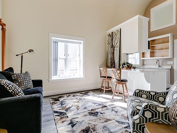 Living in Cottage Grove's historic Bank Building is truly unique. Experience the energy of urban living while embracing the close-knit community found only in a small town. Apartment 205 is a new exceptional living space with 16-foot cove ceilings, one bedroom and a sleeping loft with wrought iron-like railing. The enormous 7-foot window bathes the rooms with natural light from 6th Street and has large, deep windowsills to sit yourself or your plants on. The new kitchen is a cook's delight with stainless steel dishwasher, gas cook stove and oven, microwave, and refrigerator-freezer. And, you'll love the granite-like countertops and custom cabinets. The bathroom has a historic-looking tiled floor with a porcelain tub-shower. Clothes are easily laundered with the apartment's own new washer and dryer. And, the heat pump will economically keep you cozy in the winter and cool in the summer. Safely located on the second floor behind a locked door, each of the six upstairs apartments are just a few steps from the Community Parlor. It's filled with stuffed chairs, love seats, wooden tables, and a push-button gas fireplace. Relax and sit quietly by the fireplace and read a captivating book about love and mystery. Or, if you prefer, you're also welcome to grab the folded tables and chairs from the closet and have a "Potluck in the Parlor" with your neighbors. Play table games. Laugh out loud. Break bread together. Enjoy your community. Need additional room for items you want to access but don't need often? More storage is just down the hall. This beautiful, unique apartment is inside the historic Bank Building, centrally located in Cottage Grove's downtown historic district. Built in 1904, the Building's renovation is nearly complete and includes new plumbing, electrical, cable, and windows throughout. In the downstairs will soon be an old-fashioned eatery (coffee, ice cream, and restaurant), reception area and visitor center, private offices, personal desks, and co-working space. Windermere Real Estate will be an anchor tenant. Within just a four-block radius of the Bank Building are nine unique restaurants; from white tablecloth to family-style to grab-and-go. The historic downtown district has multiple specialty gift stores, antique shops, three independent bookstores, and more professional offices. Cottage Grove is a small-town of 10,000 and just 25 minutes from Eugene-Springfield. The area has two lakes, two rivers, two golf courses, five wineries, six historic covered bridges, and miles and miles of walking, biking, and hiking trails. The five-block historic downtown is the most intact collection of early twentieth century buildings in Lane County. And, the downtown is at the trailhead of one of Oregon's most spectacular bike routes: the famed 14-mile, paved Row River Trail, which meanders along lakes, rivers, covered bridges, scenic viewpoints, farms, and picnic areas. Welcome to your new home. Owner pays for water/sewer and garbage. Tenants pay their individual electricity, gas, cable, and internet. City-owned parking lots and street parking available nearby.
