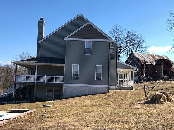 Two-story farmhouse, open floor plan, three car garage, front and rear covered porches, paver patio, 20'x40' A/S in ground gunnite pool, creeks, meadow, woods. New roof, new siding, new porch columns/railings, and new porch ceilings Spring 2016. Two new HVAC systems.