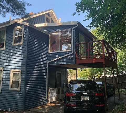large 3 bed, 1 bath apartment for rent available 10/1. hardwood floors throughout, 4 season porch with attached deck, 2 off-street parking spots accessible via private driveway, large kitchen and bathroom in the process of being completely redone (will be ready by 10/1). storage and laundry in the basement. 1 year lease with first month + security deposit required for move-in