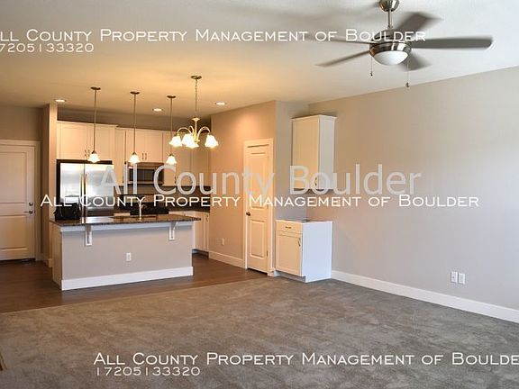 Beautiful like new townhome in perfect location, AVAILABLE NOW! Situated in the perfect location between Boulder and central Longmont, this townhome features TWO master bedrooms with large walk in closets and en suite bathrooms. A full sized washer and dryer is located on the same level as the bedrooms. Open main level living area includes a modern kitchen complete with granite countertops, breakfast bar, stainless steel appliances, gas stove and pantry. Enjoy the wonderful views of Longs Peak from the private balcony. Home is complete with a finished basement with full bathroom and office/third bedroom/rec room. Tons of storage space and attached two car garage. Very close to restaurants, shops, parks, US-119 and Hover Street. Snow removal is included with rent! NO SMOKING and NO PETS PLEASE! First months rent, security deposit, and $200 move-in inspection fee all due upon lease signing. For our other available rentals, or to apply online, visit allcountyboulder.com