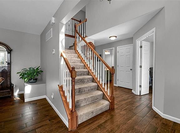 Beautifully level and fully fenced private backyard that is almost 1/2 acre in Rockwood Summit! Perfect for an inground pool and much more! 4 Bed/3.5 Bath 2 story w/Fin Basement! Features include newer wood-look CT floor throughout the ML, 6-panel white doors, modern neutral colors & lighting, WB Fireplace, ML laundry (newer W/D included)*Kitchen is open and bright with white cabinets, quartz counters, newer fridge (included), pantry and opens to the Breakfast Rm & Family Rm w/bay window & WBFP*ML office w/French doors*French doors entry to a spacious Master, two closets - one walk-in, linen, & attached bath w/soaking tub, sep shower, dual vanity, CT floor*Hall Bath with tub/shower combo updated CT floor, dual vanity*3 additional good size beds*LL includes Rec Rm w/large closet & can lights, updated Full Bath w/walk-in shower, Sleeping Rm w/large closet*Large backyard has a patio w/pergola, firepit, & white vinyl fence. Plenty of room for a pool or garden! Don't wait to see this home!