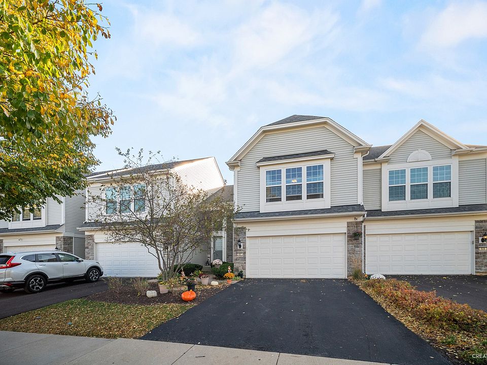 Back on the market! Buyer lost their financing days before closing.....Welcome to your new place to call home in Prescott Mills. Beautiful Town Home with water and sunset views you won't want to miss in any changing season. This bright and cheery home features 9ft, 1st-floor ceilings, new carpeting, recently painted walls and ceilings throughout the 1st floor. The eat-in kitchen features hardwood floors, 42" cherry cabinetry, stainless appliances, Corian solid surface counters, and recessed lighting. The 2nd floor features an amazing 19x12 master bedroom with a sitting area, walk-in closet, and master bath with a dual sink vanity, spacious shower, and linen closet. Bedrooms 2 and 3 are perfect for the growing family or can be used as an office or guest room. Convenient 2nd-floor laundry is steps away so the laundry can be less of a chore. Plenty of storage space in closets and in the garage. Move right in and enjoy this wonderful home for less than the cost of renting. Come check us out and see everything this property has to offer in a friendly and convenient neighborhood. Located minutes from high-ranking District 308 schools, restaurants and stores. Better schedule to visit quickly, this one won't last long.