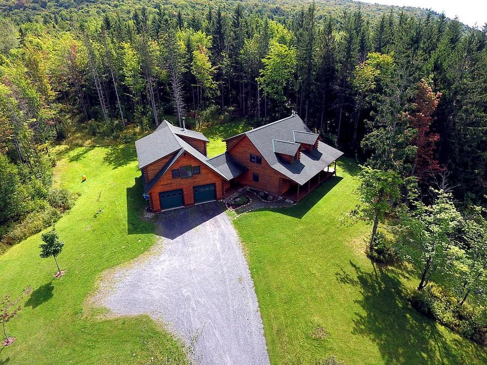This gorgeous log home rests on 562 biologically diverse acres situated on the shoulder of Lowell Mountain facing the Northern Green Mountains and abutting 1,241 conserved acres which are open to hiking. Solar panels and a small wind turbine, a wood boiler, and a back up generator keep this 3-bedroom, 2-bath forest home comfortable, including a sweet 935 square foot guest apartment above the 2 car garage. Slate counter tops, custom cabinetry, exposed beams, stainless steel appliances, wood & tile floors above radiant heat appoint the home. Additional storage provided by the 3 bay wood / equipment shed with storage above. Outside the home nature abounds with creeks, natural ponds, maple trees, wildflowers, mountains, accessible via a network or trails. Property is enrolled in the land use program (current use) and being sold as such. Enjoy Green Living with a plethora of private land to enjoy!