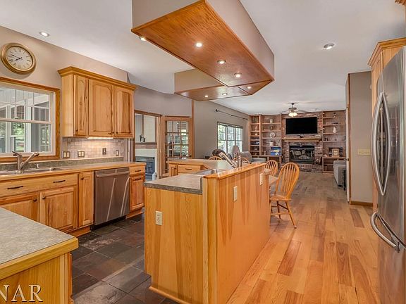 Wonderfully updated 4 bedroom home in North Pointe subdivision. Custom kitchen totally upgraded with slate and hickory wood floors, brand new Whirlpool Gold double oven, Aristicraft self closing cabinets, Amana cooktop with warming lights, built in Boos cutting board, stainless appliances and custom breakfast bar. New HVAC in 2014. New roof in 2012. Huge master with custom built ins and en suite with tiled shower and skylight. Wood burning fireplace in living room with custom built ins. 1st floor laundry. Office on 1st floor with custom wainscoting and oak wood floors. Fresh paint in 2018. Floors refinished 2018. New garage door 2014. Partially finished basement with wet bar and workshop. New sump pump in 2013. 1st floor half bath updated in 2011. 3 tiered deck recently painted with fire pit and recently power washed awning great for entertaining. Access to common area from the backyard. Private lake directly across the street. Amazing value in an amazing area!