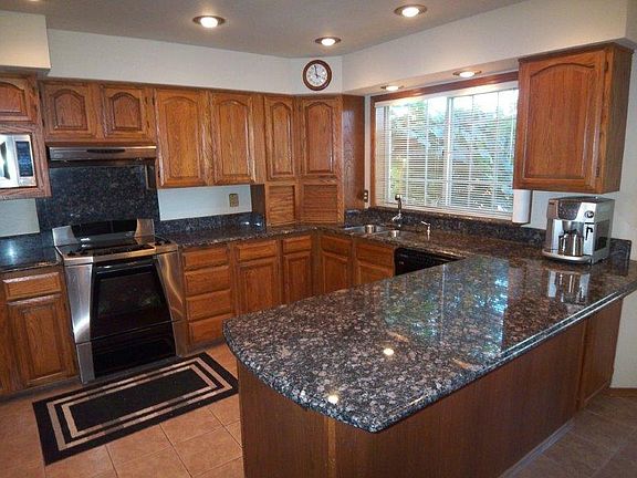 Large kitchen with granite countertops, tile floor and stainless steel appliances, along with lots of counter space and open to dining area and family room, offers great entertaining area. Formal living room & dining room with vaulted ceiling, guest bath, office or 4th bedroom with French doors, and laundry/mudroom finish off the main level. Upstairs feels grand with natural light from skylights and bay windows. Large master bedroom, full bath with jetted tub and walk-in closet and secret private space great for relaxing or reading, makes this your own sanctuary (don't miss it). 2 additional bedrooms and bath complete the upstairs. Direct access to deck and fenced backyard, brings the inside and outside living spaces together with additional cooking area with stove & oven. Mature professionally landscaped yard with waterfall, UG sprinklers with irrigation water and fenced backyard. Make this your new home. New composition roof, gas BBQ plumbed and 3 car garage.