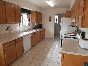 Bring Your Toys! This wonderful home has an open floor plan, two bedrooms, two full baths, vaulted ceilings, dining room with patio doors to back deck and fenced yard, large kitchen, all appliances are included. Home has an attached 2 car garage and there is a large additional garage with workshop and RV parking space.