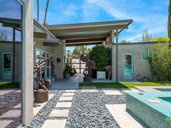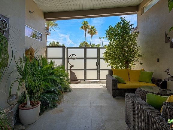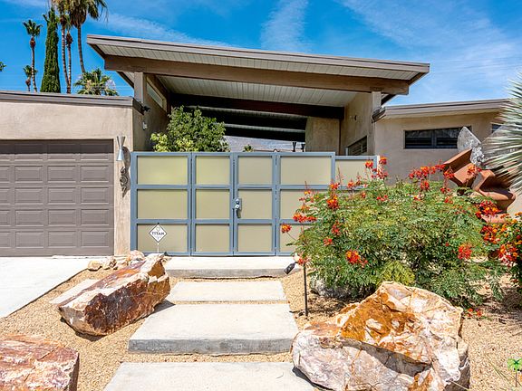 Taking back up offers! Remastered Mid-Century Meiselman Private Compound! Chance of a lifetime to own a completely remodeled Mid-Century classic in one of Palm Springs historic neighborhoods. The remarkable iron gate entrance immediately captures a stunning mountain view from the pool/spa and park-like yard. An open concept brings living, dining and kitchen areas all together for today's modern lifestyle. Concrete floors throughout the entire home make for easy everyday living. Two master bedrooms on opposite sides of home give you that separation everyone is looking for. Custom cabinets, poured concrete counter tops, Wolf gas cook-top and stainless appliances top off the ideal kitchen. The home was rebuilt with an entire new wing, electrical panel, wiring, copper plumbing to the street, dual HVAC, pool plaster & tile, roof, dual pane windows & doors, hand-plastered smooth-coat exterior walls and concrete patios. All work was completed in '05 & '06. Solar Panels have been pre-paid.