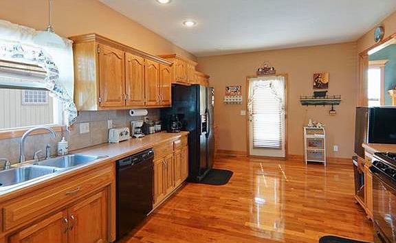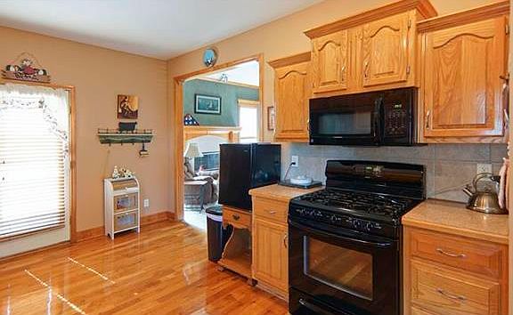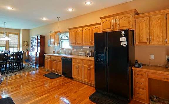 Remarkable raised ranch! Kit w/ gleaming hardwds, pantry & walkout! Stove, Microwave, & fridge stay! Gorgeous dining area! Family rm w/ high ceilings, upgraded crown molding, gas log FP! Spacious master w/ trey ceil! Private master bath w/ jetted tub & walk in shower! All bedrms w/ ceiling fans! Laundry closet on main level! Rec rm below & laundry rm w/ sink, & tons of storage space! Huge garage w/ built-ins! Private park-like backyard w/ lush landscaping, stamped patio, & wooded views from your deck! Wow!