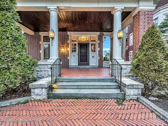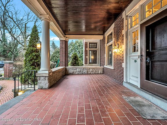 So much to offer in this stately, gabled Tudor home in Scranton's historic hill section. From a spacious brick porch, enter into the natural beauty of gleaming hardwood floors and original woodwork. An impressive living room features large windows, a stunning fireplace, French doors and a cozy Bay area. A sunroom/office provides lots of natural light, a second fireplace, and opens to an expansive deck with views of the city. Next, the dining room has oversized windows and is perfect for entertaining family or a dinner party. The large kitchen hosts a multitude of cabinets and display space, with granite countertops, and a peninsula perfect for meal preparation. Heading up the grand staircase, you will find a private master suite with another inviting Bay area, master bath, and a dressing room that may make your friend's envious. An additional 5 bedrooms, and 2 full baths, can be found on the second and third floors, with ample room for storage or more living space. FINALLY, THE PROPERTY OFFERS A NEWLY RENOVATED, 1600 SQUARE FOOT, 3 BEDROOM, 2 BATH, CARRIAGE HOUSE AND 6 CAR GARAGE, PERFECT FOR AN IN-LAW APARTMENT. PS... Did I forget to mention there's a wine cellar and an additional office in the lower level of the main house?