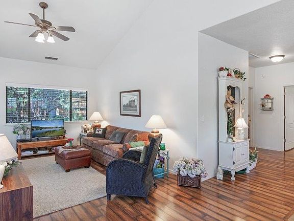 Beautiful home with beautiful updates! This 3 bedroom, 1,456 sq. ft., Woodhill home features 2 full bathrooms, 2 car garage, open floor plan, vaulted ceilings and laminate wood and tiles floors throughout. The living room has large windows for natural lighting as well as a gas fireplace with beautiful stonework for enjoying Payson's cooler months. The kitchen has lots of cabinet space and a large island with a breakfast bar; paired with the open floor plan to the living room this makes a great entertainment space. In the spacious master suite, you'll find his and her closets, a walk-in shower, jetted tub, and an oversized vanity. Outside you find a fully fenced backyard along with covered front and back porch, perfect for enjoying the cool quiet evenings. There is plenty of mature trees to