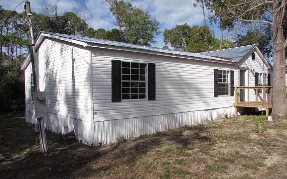 Well maintained double wide mobile home located on 2 lots in Carrabelle. Very nice large lot with tree palms, sweetgum, and cedar with a chain-link fence surrounding the home. The property comes with two outbuildings for storage A deck on rear of the house includes a handicap ramp. A metal roof installed only a few months ago. Master bedroom with a full shower and tub on one end and three bedrooms with a full bath on the other end. This home offers a dining room, a family room with a gas fireplace and walk-in pantry. Three bedrooms have walk-in closets. Separate laundry room with shelving. Utilities are city water and city sewer, with available telephone and cable tv. Conveniently located in a quiet area of Carrabelle with just blocks to everything ie. grocery store, bank, eateries, and the beautiful Carrabelle River.