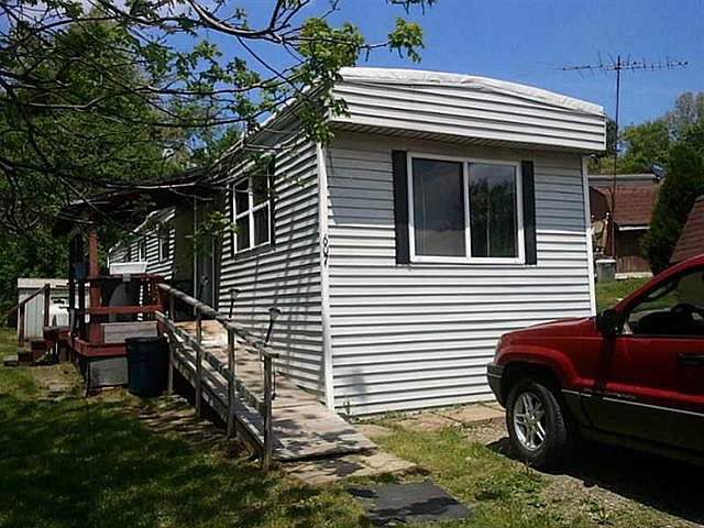 Updated mobile. Newer one piece rubber roof, Updated siding, newer hot water tank, 1 yr old fridge, updated Vinyl windows, additional insulation. End of street lot with no traffic and privacy! Nice porch view into the woods. Shed for extra storage. Deck porch. Laundry hookups with washer/dryer.