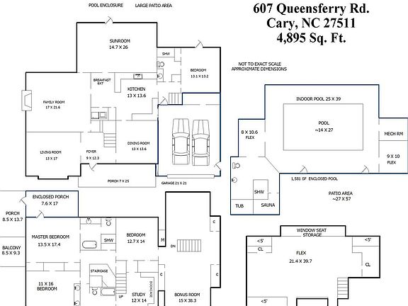 English Tudor Estate features Coffered & Ship Lap ceilings & stunning hardwood floors. Kitchen, adjacent to Family Room, includes Miele Stainless Hood, Dishwasher, Range & Bosch Fridge. Designer White-Gray Granite Counters+Back splash & Stainless Sink. Master Suite+Balcony.Vaulted Bonus Room & Library. Indoor Heated Pool House w/4th Bath & Spa could convert to detached office etc. Rinnai Tank-less Water Heater. Professionally landscaped .60 Acre Lot w/Stone Gazebo. Owner spent $1M++All repairs negotiated.
