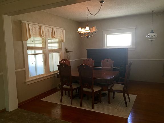 This 2 bedroom 1 bath home features a large enclosed porch with many built ins, formal dinning room, kitchen and stained glass windows.. Bedrooms share bathroom all located on main level. Large corner lot with curb appeal and nice location in a quiet neighborhood. Detached 1 stall garage. Unfinished basement for storage needs.