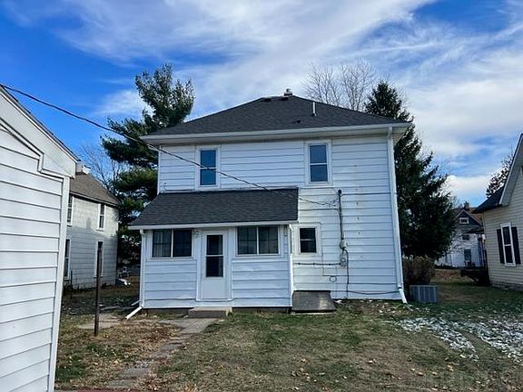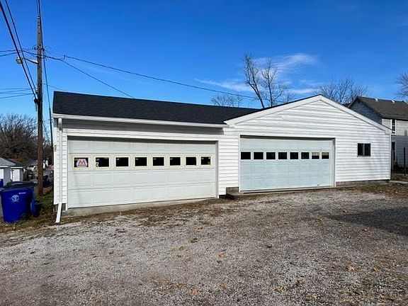 Large remodeled 5 bedroom, 2 bath, 2 story home, 4 car + 24' xc 48' detached garage, concrete floor, 2- 16' overhead doors, alley entrance; Home has vinyl siding, new roof, older remodel oak dine-in kitchen; enclosed rear porch with laundry room, new carpet, laminate in baths, new large walk-in shower, gas furnace and central air conditioning, partial basement with 2nd exterior entry;