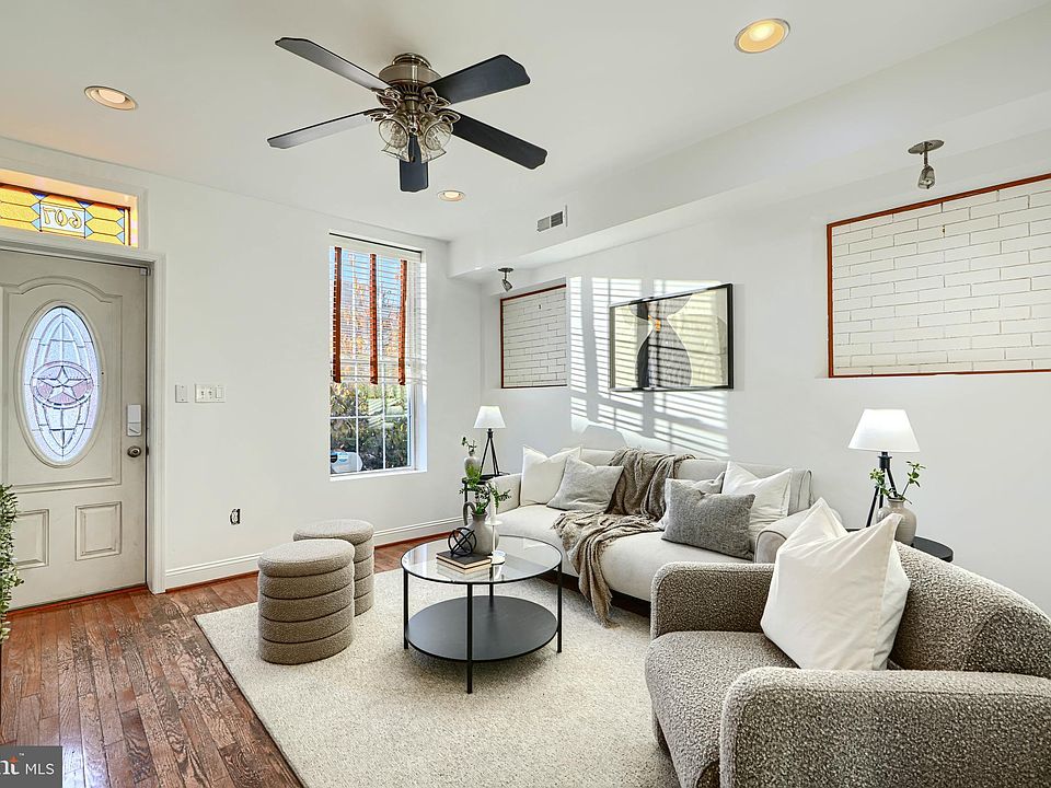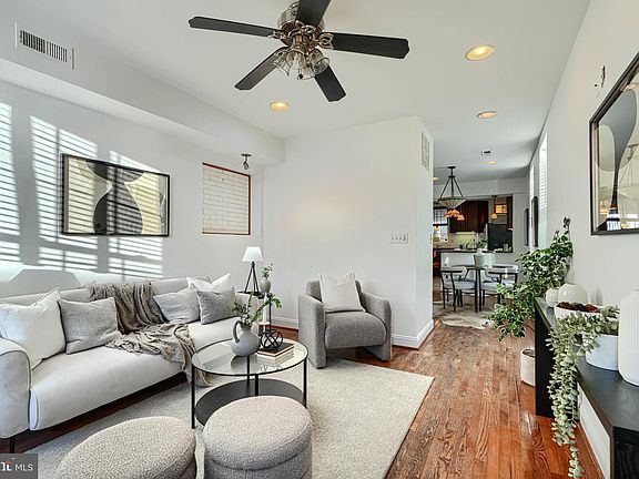 Charming, 2 bed 2.5 bath, end of group, Canton row home, flooded with natural light! The main level boasts hardwoods, an eat in kitchen with stainless appliances, a separate dining area, and convenient 1/2 bath. Upstairs find two bedrooms each with en-suite baths, access to multiple decks, and hall laundry. Last but not least enjoy convenient parking pad and rear patio for grilling. Convenient access to JHH, 95, 895, and all Cantons wonderful shops and restaurants.