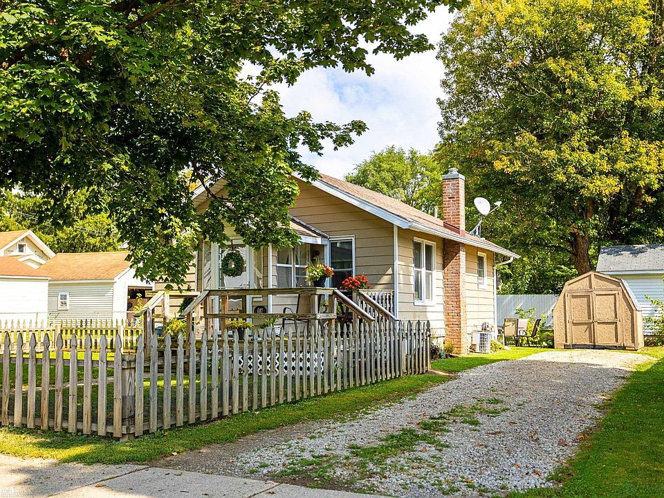 CALL direct! Don't hit that contact agent button! Adorable and affordable! This 2 bedroom offers one-floor living with laundry in the kitchen for convenience! New flooring and fresh paint, new light fixtures and ceiling fans, window coverings, water line to the street and more! Hickory cabinets, modern decor, all dolled up and ready to go. Enclosed porch, full basement and shed for extra storage. Small fenced area for your furry friends too! Compact and oh so cute!