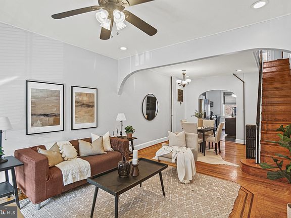 This updated, 3 Bedroom, 2 Bath home with a private Parking Pad located in Brewer’s Hill, Must be Seen! This charming home is complemented by an all-brick front and covered front porch. Step into the Main Level which showcases an open concept floor plan, gleaming hardwood flooring, recessed lighting, elegant ceiling archway and iron stair railings. The Gourmet Kitchen is a Chef’s Dream and features stainless steel appliances & range hood, granite counters, white cabinets, gas cooking, island with breakfast bar, tile flooring and a convenient walkout to the rear parking pad (or additional entertainment area when hosting family & friends!) Back inside, make your way upstairs to the Primary Bedroom with Hardwood flooring, enormous walk-in closet with built-ins, dressing vanity and skylight. Another, generously sized bedroom provides a comfortable retreat. The Upper-Level Full Bath features a tub shower combination with subway tile surround and tile flooring. Continue to the lower level featuring a spacious third Bedroom and another full bath, with a walk-in shower and tile flooring. The Laundry and storage area could easily provide a Recreation Area or Home office! This home is close to markets, libraries, dining and within walking distance to Patterson Park! Don’t Miss It!