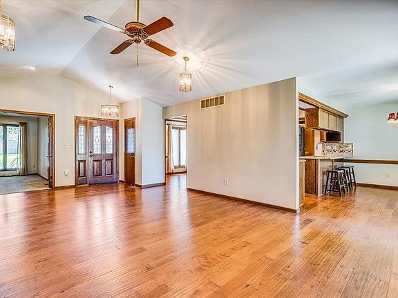 Great Ranch in Oakwood Valley! Walk to the neighborhood pool (with a lifeguard!), Tennis courts, Clubhouse or playground. Short walk to Derby's hike and bike path and Garret Park! Wood floors throughout entry, Living Room, Formal Dining Room and Kitchen. Main Floor Laundry room with Cabinets and Washer and Dryer stay! Owners Suite has a door to the large entertaining deck and a private remodeled bathroom. Bedrooms 2 & 3 have a Jack and Jill bathroom! Full Finished basement with a built in desk, Family room and an enormous Game room, 4th bedroom also is attached to its own full bathroom. Out back is a Large shop with Garage door.