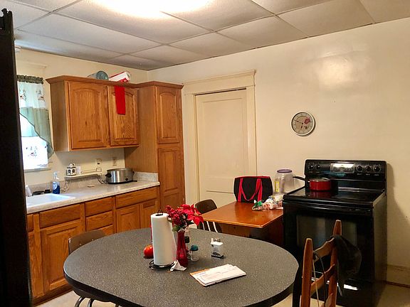 This is the Wells House built in 1950, living room with fireplace, wood floors thru-out, It would make a great home, home business, or office; used as a real estate office in the past. The other room is a bonus room on the second floor could be used as an office or another bedroom. The den downstairs has also been used as a bedroom in the past. It appears the home has 75+ feet of road frontage, paved parking with 11 spots.