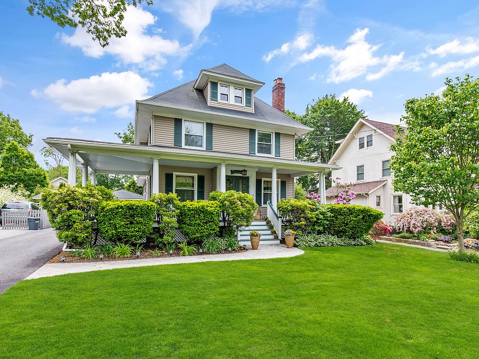 Welcome to this charming colonial w/lemonade porch in the heart of town! Located near schools, train to NYC & shopping. Offering 5 BR, 2.5 baths, huge FDRM, LVRM w/fireplace, EIK w/granite, cherry cabinets, walk-in pantry & door to deck, master suite w/walk-in closet & bath w/Jacuzzi, hardwood floors & chestnut trim, high ceiling basement, private backyard, new furnace and much more, beautifully maintained - truly pride of ownership!