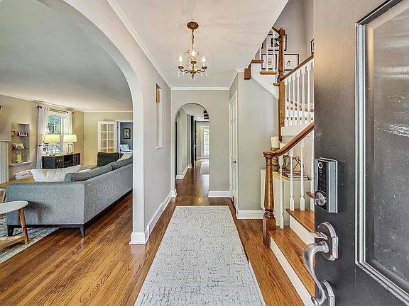 Prepare to be impressed! As soon as you walk into this charming home, you'll be greeted by hardwood floors and a spacious living area featuring a wood-burning fireplace. This area flows seamlessly into a JUMBO eat-in kitchen, updated to designer standards with stainless steel appliances, an island, a bar, and French doors leading to a back deck that overlooks a beautifully manicured yard. The first floor includes a flexible room that can serve as a bedroom or is currently used as a home office. Upstairs, you'll find three bedrooms and a newly renovated bathroom. The fully finished basement includes an additional full bath. The home also features flood control and a sump pump, new windows and roof, and a 2.5-car garage accessible from a paved alley. Plus, you can walk to schools at all levels. Welcome home!