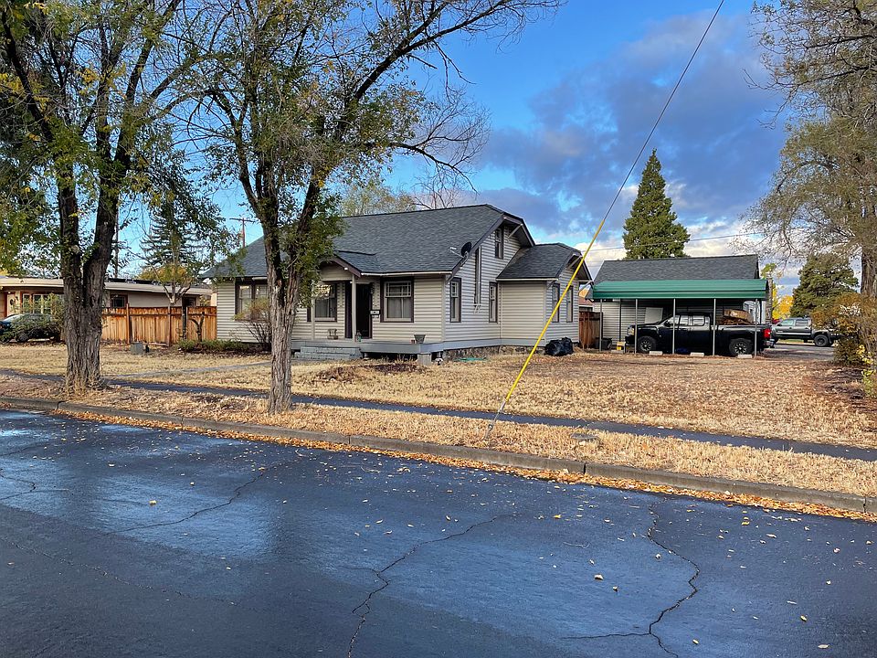 Historic 1600 sq ft bungalow for rent in Downtown Redmond OR. Home was built in 1930 by Charles and Kate Swendig. Great southern and western exposure resulting in lots of natural, bright sunlight throughout the day. Hardwood floors throughout, large living room, separate dining room with French Doors opening to a large, fenced patio. New efficient furnace installed within last 2 years, central air conditioning. Kitchen with gas range, dishwasher, refrigerator and sunny breakfast nook. One full bath with tub/shower. One half bath with clothes washer and dryer. Great storage with full attic accessible through hall stairway. Basement accessible through stairway off kitchen. Large, detached garage with spacious well-lit workshop. Detached single car port. Large corner lot with fenced back yard including large sunny patio. Easy walk to downtown stores, restaurants and entertainment. Initial one year lease then month to month. Security deposit of $2200. Renter pays for electricity, gas and garbage collection. Owner pays water/sewer. No smoking inside. Small pets ok. Tenant is to maintain outdoor space.