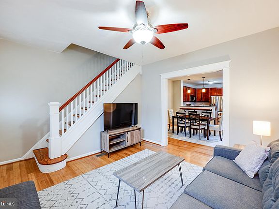 Welcome to this charming Greektown gem, where modern comfort meets classic Baltimore charm! This beautifully renovated three-bedroom, two-and-a-half-bath home offers an exceptional living experience with its thoughtful layout and numerous updates. Step onto your covered front porch, perfect for morning coffee or evening relaxation, before entering into a spacious interior featuring stunning 9-foot ceilings on both main and second floors. The main level welcomes you with elegant bamboo flooring in the living room, complemented by a beautifully restored original staircase. The flowing floor plan leads to a generous dining area and an oversized gourmet kitchen, making entertaining a breeze. Upstairs, you'll find two comfortable carpeted bedrooms and a flexible bonus space ideal for a home office or reading nook. A strategically placed skylight floods the hallway with natural light, while a full bathroom with tub/shower combination serves this level. The finished lower level provides the perfect setup for guests or rental income, featuring a separate living room, bedroom with luxury vinyl flooring, full bathroom, wet bar, and private entrance. Recent improvements include a 2020 roof replacement, updated HVAC (2019), and modernized sewer and gas lines. The private rear patio, enclosed by a tall fence with a wide gate, offers versatile outdoor living space. Located in a rapidly developing area, this home puts you within walking distance to Bayview Hospital, Streets Market, popular eateries, and fitness centers. Enjoy easy access to major highways and shopping destinations, including Canton Crossing. This move-in ready home combines the best of city living with modern amenities and convenience.