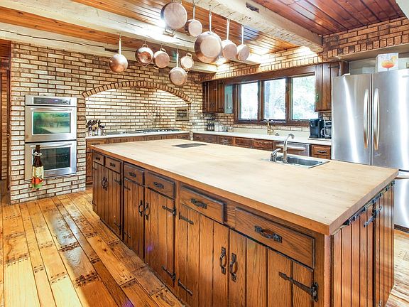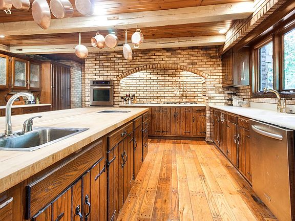 Elegance of France is captured in this majestic brick and stucco country home on very secluded almost 3 acre site. Slow winding drive accented by stone terraces leads to a magnificent 2 story entry with circular staircase open to 2nd floor landing. Huge rooms, loads of closets. Cofered ceiling formal dining room, etched and leaded glass interior doors, cove moldings, 3 fireplaces, huge super equipped country kitchen with wide plank flooring and antique beams. Main floor recreational room, formal living room, primary suite with sitting area, fireplace, Juliette balcony and access to its own brick patio. Primar bath has deep soaking tub, huge walk-in shower, sleek design double sink vanities, heated floors. More great features - main floor laundry, additional less formal staircase to 2nd floor, main floor office or exercise room with full bath close, guest wing or in law space. 2 huge second floor walk-in dormers and unfinished walk out basement.