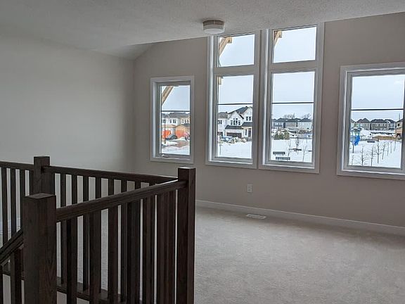 Welcome to this 4-bedroom home with a loft, perfectly situated on a premium lot facing the park and greenspace. The open-concept layout showcases picture-perfect curb appeal, a bright family room, and a chef's kitchen overlooking the backyard, plus a convenient mudroom. Upstairs, a loft with a balcony complements an impressive primary retreat, while oversized windows flood the home with natural light. Upgrades include oak hardwood flooring, quartz countertops, 9' smooth ceilings, pot lights, a pantry, and two-tone cabinetry. The kitchen opens to a great room with a striking floor-to-ceiling fireplace. The spacious primary suite features two walk-in closets and a luxurious ensuite; the second bedroom boasts a vaulted ceiling. A large recreation room enhances the finished lower level