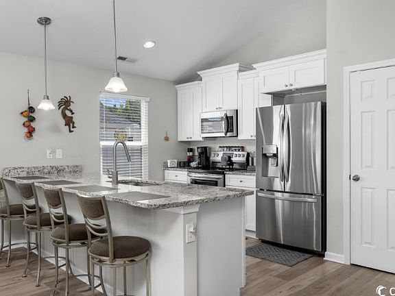 Absolutely beautiful and extremely well maintained home with lots of upgrades! This 3 bedroom, 2 bath home located in Myrtle Grove Plantation was built in 2020 and still looks brand new! As soon as you step through the front door, you will notice how clean and nice this home is. An oversized living room gives the home a open and airy feel, complete with a vaulted ceiling and fan. The kitchen offers plenty of cabinet storage, granite countertops, a pantry with wood shelving, and a large breakfast bar. A large, primary bedroom is just off the living room and has an ensuite bath with shower and walk-in closet. All closets in this home have custom cabinetry and shelving. Gorgeous luxury vinyl plank flooring runs throughout the home and all cabinets and drawers are soft close. Outside, there is a fully fenced backyard and oversized 10 x 20 extended patio, perfect for relaxing and grilling out. Myrtle Grove Plantation is located approximately 25 minutes from the beach, close to area shopping, dining, and attractions. Schedule your showing today to see this beautiful home! Buyer and buyers agent responsible for verification of all information.